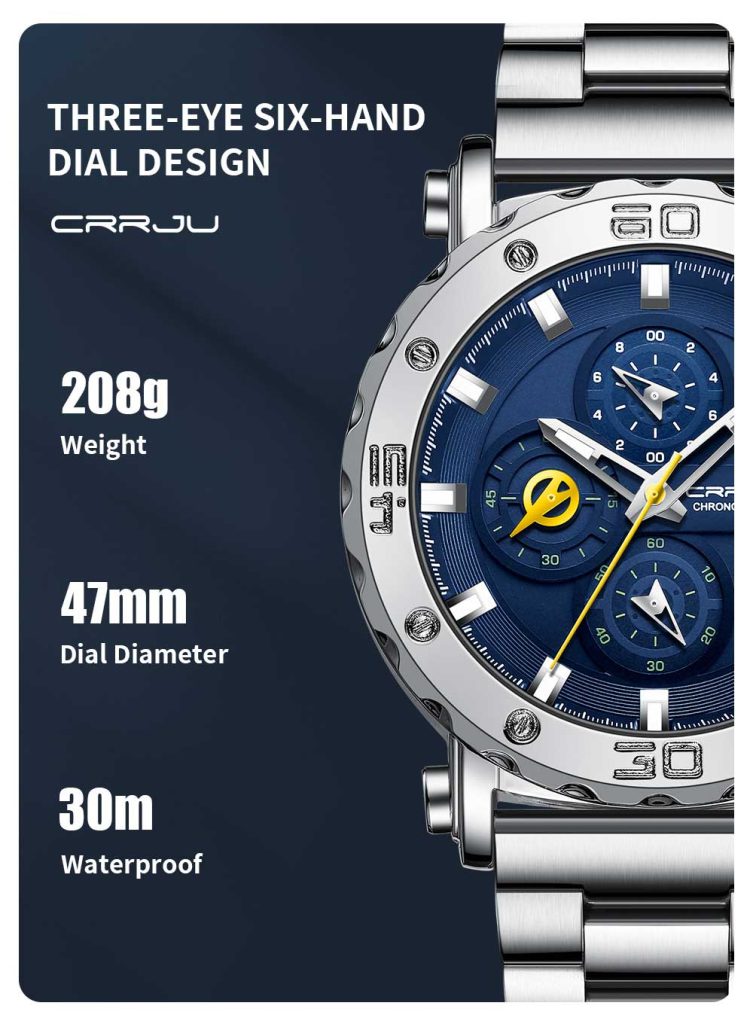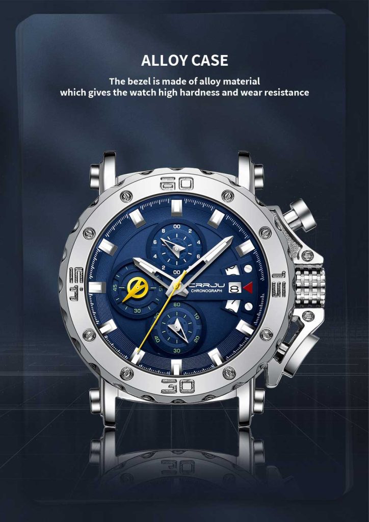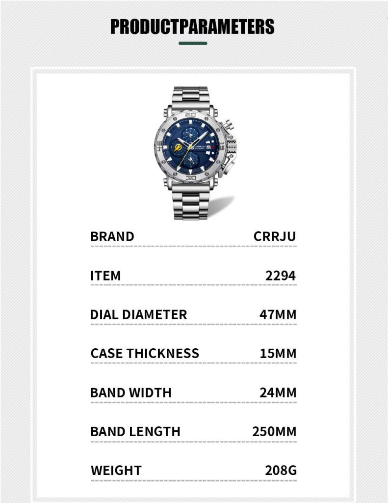 “Upgrade your style with the CRRJU Men Watch Quartz wrist watch and enjoy a sleek bonus – the all-new kangaroo men’s wallet, absolutely free!